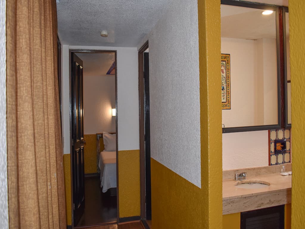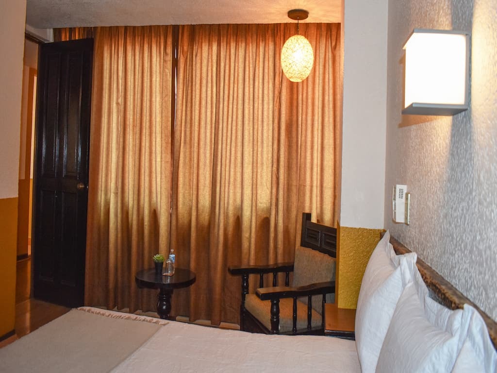 Dos habitaciones conectadas, cada una con dos camas individuales, ideales para familias o grupos. Ambas incluyen escritorio, televisión, mesa de noche, secadora de pelo, clóset, caja de seguridad, ventilador, plancha y burro de planchar, ofreciendo comodidad y funcionalidad durante toda la estancia.